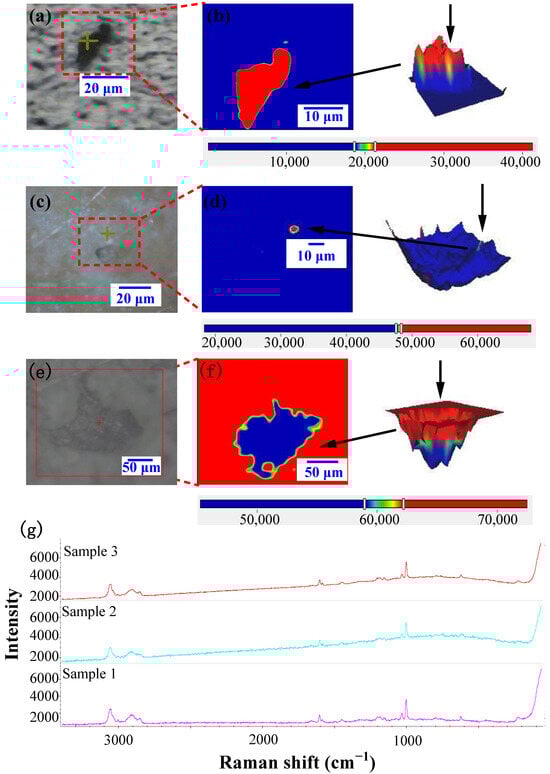 Raman imaging technology integrates Raman spectroscopy and microscopy, powerful analytical tools that record information carried by monochromatic light from inelastic scattering to study the chemical properties of molecules. This technique is typically non-destructive and non-contact, where each pixel of a chemical image contains molecular information, comprising complete Raman spectra. This allows for enhanced characterization through pseudocolor processing, highlighting the molecular structure and composition of samples, thus improving the precision of feature characterization. Spectral data can be analyzed in various ways to address specific analytical questions, such as enhancing sample characterization by generating false-color images, which more clearly display the chemical structure and composition distribution of samples. In defined test areas, Raman spectra are collected point-by-point at fixed intervals, capturing spatial information. During testing, the laser remains focused on a single sample point, with the sample moving under the laser until the entire area of interest is “imaged”. Peak intensity is a common method for Raman imaging to represent chemical distribution and concentration, and attributes such as multiple peak intensities, peak shifts, peak ratios, and peak widths are also commonly used to generate Raman images for various applications.