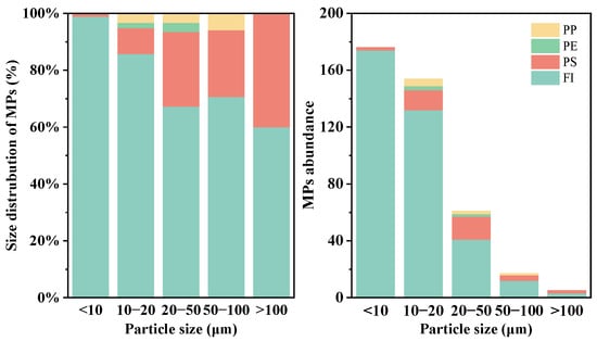 Food packaging, daily necessities, and plastic products have become integral to our daily lives, providing convenience but also generating substantial plastic waste. During the pandemic, the extensive use of plastic items such as takeaway containers and masks has inevitably led to an increase in plastic waste [,,]. These plastic wastes are resistant to natural degradation in the environment, accumulating over time and, under the influence of factors such as UV radiation, hydraulic shear, and biological metabolism, giving rise to numerous microplastic particles [,]. This accumulation poses an escalating ecological risk. The concept of “microplastics” is generally defined as plastic particles with a diameter smaller than 5 mm, including fibers, films, and fragments []. Correspondingly, nanoplastics are defined as plastics with a size of 1 nm to 1 μm []. Recent studies indicate that microplastics, along with adsorbed toxic chemicals, can eventually enter human metabolism through the food chain, affecting human health by disrupting metabolic processes [,,]. Due to the ingestion of food being one of the pathways for human exposure to microplastics, these particles have been identified in human blood, urine, feces, and breast milk in various studies [,,,]. An increasing number of researchers are investigating the mechanisms through which microplastics may contribute to human diseases. Consequently, their contamination of the food has raised widespread concerns.