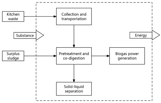 System boundary of anaerobic co-digestion treatment for kitchen waste and sewage sludge.