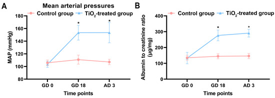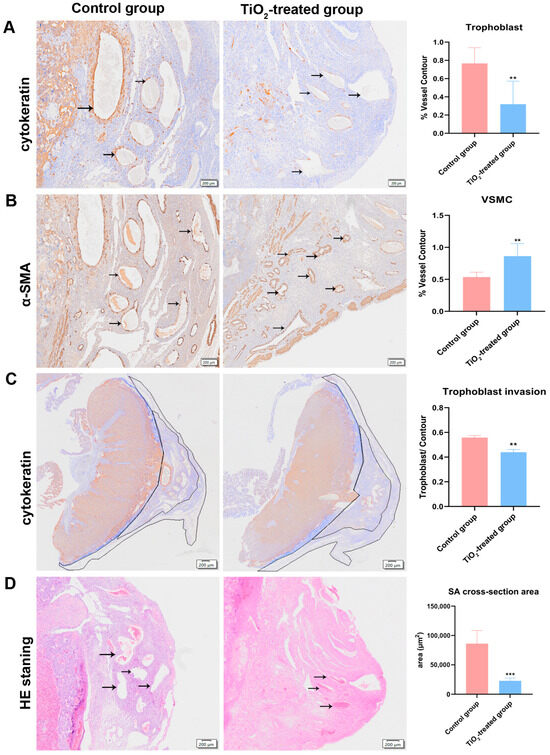APA StyleLi, H., Miao, D., Hu, H., Xue, P., Zhou, K., & Mao, Z. (2024). Titanium Dioxide Nanoparticles Induce Maternal Preeclampsia-like Syndrome and Adverse Birth Outcomes via Disrupting Placental Function in SD Rats. Toxics, 12(5), 367. https://doi.org/10.3390/toxics12050367