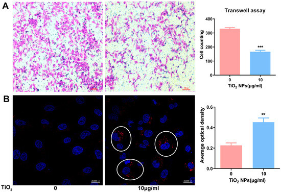 3.9. Effects of TiO2 NPs on the Migration and Invasion Ability of Human Trophoblastic Cells