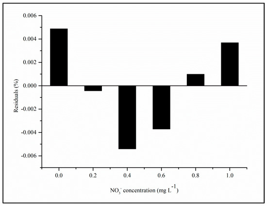 Regression plot of residuals from the calibration curve for nitrate quantification (refer to Figure 7B).