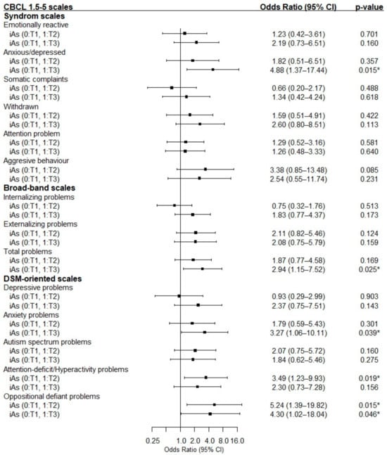 3.5. Association between Prenatal iAs Intake and Risk of Children’s Psychological Problems