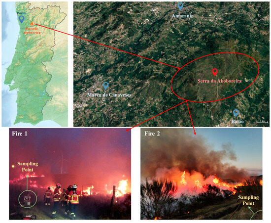Geographical localization of Serra da Aboboreira (Porto, north of Portugal) where prescribed Fire 1 and Fire 2 occurred.