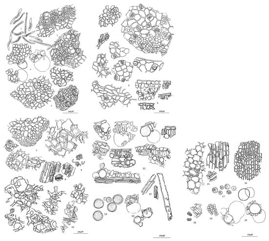 L. martabanica leaf contains various tissues, including unicellular trichomes, the lower epidermis with tetracytic stomata, idioblasts, and the epidermis with cicatrix, as shown in