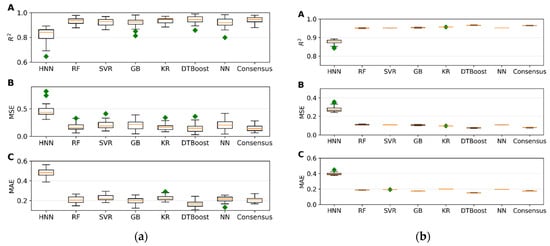 Approximately 20% of the data were randomly separated as the test set. The calculated performance metrics of the models were based on an average of 30 iterations. Mean square error (MSE), mean absolute error (MAE), and coefficient of determination (R2) were the metrics used to evaluate the performance of the models (Supplementary Equation (S2)).