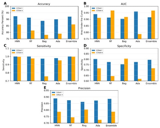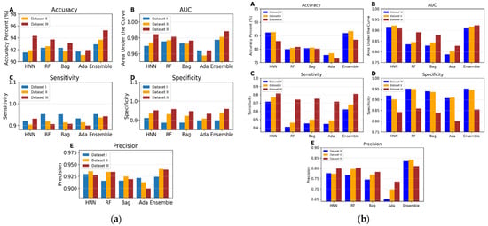 To compare and evaluate the binary and multiclass predictions of our HNN method, we developed binary and multiclass classification models using various machine-learning techniques, including random forest (RF), bagged decision trees (also known as bootstrap aggregating or bagging), and adaptive boosting (AdaBoost). These models were then combined to create an ensemble model for improved predictive performance.