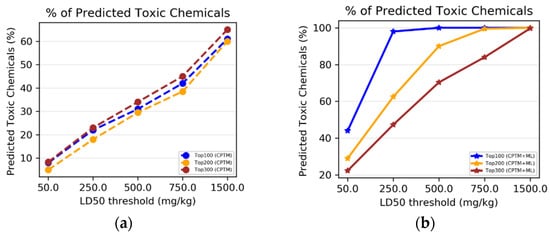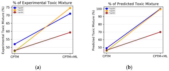 Machine-learning (ML) models have emerged recently to predict mixture toxicity. Duan et al., used ink-jet printing (IJP) technology and continuous photographing to generate experimental toxicity data in the form of luminescent inhibition rates (LIRs) [13]. ML-method-based regression models were developed on the ternary mixtures of four compounds at various concentrations to predict the toxicity. The random forest (RF) method gave the best predictive performance, with an average R2 of 0.96. The limitation of this strategy was that toxicity prediction could be done only for the mixtures of the compounds in the training set by varying their concentration. Cipullo et al. used neural network (NN) and RF to develop regression models that predicted the toxicity of complex chemical mixtures in two soil samples by first predicting the bioavailability concentration and using the value as input in the toxicity prediction models [14]. This method is applicable for predicting the toxicity for only those two soil samples at a given time t. Neither of the models in these two studies can be used generally to predict the toxicity of a mixture of random chemicals. The mixtures comprise a limited number of compounds as the component chemicals, and there is no provision to change the input features based on the descriptor of the component chemicals. These studies apply very specific and complicated methods to generate the toxicity data and use very limited input features to develop ML models with limited applicability. Thus, there is a need for robust models to predict the toxicity of a diverse set of chemical mixtures using easily obtainable descriptors as the input features and a more interpretable form of predicted toxicity. Also, binary classification models that predict whether the mixtures are toxic or not and multiclass classification models that predict the degree of toxicity of the mixtures are important to identify hazardous mixtures.