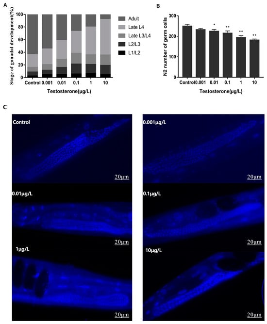 Chicago/Turabian StyleMeng, Ke, Ying-Chi Shi, Wei-Xi Li, Jia Wang, Bei-Jing Cheng, Tian-Lin Li, Hui Li, Nan Jiang, and Ran Liu. 2024. "Testosterone Mediates Reproductive Toxicity in Caenorhabditis elegans by Affecting Sex Determination in Germ Cells through nhr-69/mpk-1/fog-1/3" Toxics 12, no. 7: 502. https://doi.org/10.3390/toxics12070502