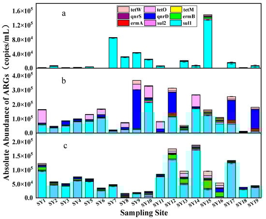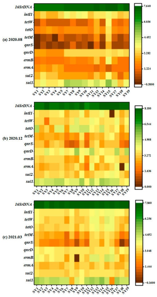 - Zhang, G.; Lu, S.; Wang, Y.; Liu, X.; Liu, Y.; Xu, J.; Zhang, T.; Wang, Z. Occurrence of antibiotics and antibiotic resistance genes and their correlations in lower Yangtze River, China. Environ. Pollut. 2020, 257, 113365. [Google Scholar] [CrossRef]