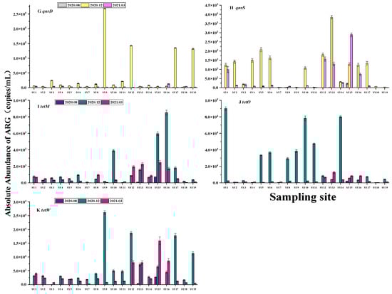 - Gao, H.; Zhao, F.; Li, R.; Jin, S.; Zhang, H.; Zhang, K.; Li, S.; Shu, Q.; Na, G. Occurrence and distribution of antibiotics and antibiotic resistance genes in water of Liaohe River Basin, China. J. Environ. Chem. Eng. 2022, 10, 108297. [Google Scholar] [CrossRef]