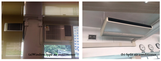 (a) Window-type air conditioner and (b) split air conditioner.