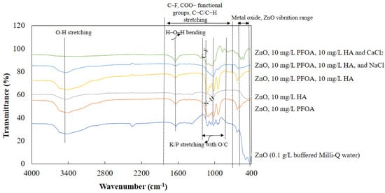 FTIR: The interactions of ZnO-NPs with PFOA in the presence of HA and electrolytes were investigated via FTIR analysis (