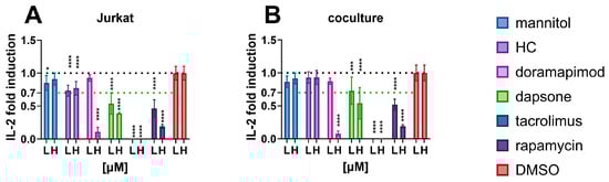 - Kimura, Y.; Terui, H.; Fujimura, C.; Amagai, R.; Takahashi, T.; Aiba, S. Optimization of the IL-2 Luc Assay for Immunosuppressive Drugs: A Novel in Vitro Immunotoxicity Test with High Sensitivity and Predictivity. Arch. Toxicol. 2021, 95, 2755–2768. [Google Scholar] [CrossRef]