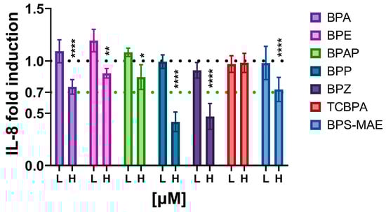 - Chen, Y.; Xu, H.S.; Guo, T.L. Modulation of Cytokine/Chemokine Production in Human Macrophages by Bisphenol A: A Comparison to Analogues and Interactions with Genistein. J. Immunotoxicol. 2018, 15, 96–103. [Google Scholar] [CrossRef]