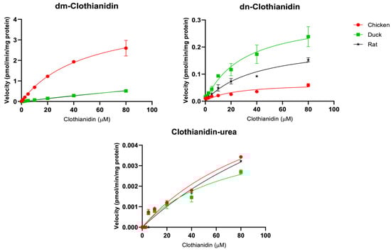 | Clothianidin | dm-clothianidin | Vmax | 4.4 ± 1.2 | 2.9 ± 1.3 | - | - | NF |