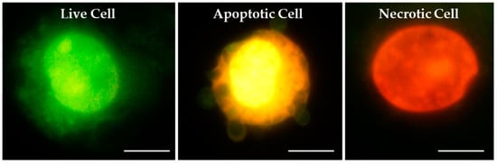 3.2. Fluorescent Viability Assay with Ethidium Bromide and Acridine Orange (EtBr/AO) Staining