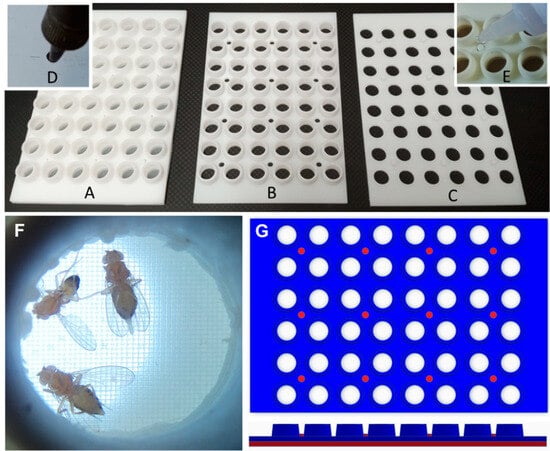 - Jaime, M.D.L.A.; Salem, G.H.; Martinez, D.J.; Karott, S.; Flores, A.; Palmer, C.D.; Mahadevaraju, S.; Krynitsky, J.; Garmendia-Cedillos, M.; Anderson, S.; et al. Whole Animal Feeding FLat (WAFFL): A Complete and Comprehensive Validation of a Novel, High-Throughput Fly Experimentation System. G3 2023, 13, jkad012. [Google Scholar] [CrossRef] [PubMed]