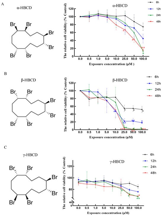 3.1. Effects of HBCD on Cell Viability