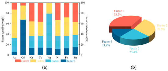 (a) Factor profiles of PTEs derived from the PMF model; (b) the percentage contribution by an individual factor using the PMF model.