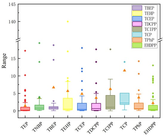 | Chongqing | ∑OPE10 | 61.2 | 77.4 | 10.1–315 | The proportion of TBOEP(TBEP) is higher | [51] |