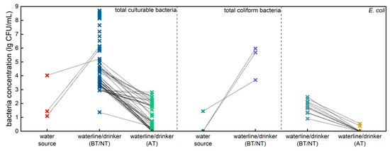 36. Folorunso, O.R.; Kayode, S.; Onibon, V.O. Poultry farm hygiene: Microbiological quality assessment of drinking water used in layer chickens managed under the battery cage and deep litter systems at three poultry farms in southwestern Nigeria. Pak. J. Biol. Sci. 2014, 17, 74–79. [Google Scholar] [CrossRef][Green Version]