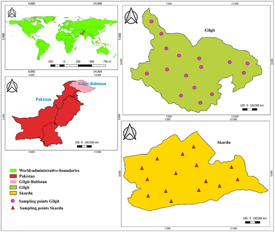 Gilgit-Baltistan (GB) lies in the foothills of the mighty Karakoram and Himalaya Mountains and occupies a total area of 72,496 square kilometers. The area is landlocked, roughed and mountainous, and is home to around 2 million people [31]. The nature of the area makes it inaccessible to modern healthcare and educational resources, and the people rely on local mining, agricultural, and tourism sectors for their socioeconomic survival. Every day, the populace is plagued by potentially fatal illnesses like cancer, heart arrest, hepatitis, and renal failure. The number of cancer patients increases, and it is becoming more widespread in the area. The frequency of these illnesses may be related to various causes, including toxic metals, inadequate sanitation and hygiene, food poisoning, and environmental pollution.