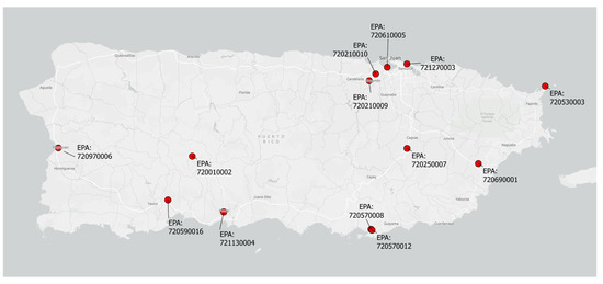 Map of Puerto Rico and EPA monitoring sites.