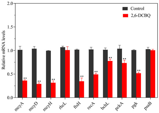 3.1. Physiological Responses of M. aeruginosa Exposed to 2,6-DCBQ