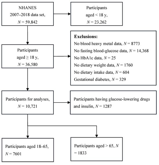 Yang C, Dai S, Luo Y, Lv Q, Zhu J, Yang A, Shi Z, Han Z, Yu R, Yang J, et al. Vitamin E Intake Attenuated the Association Between Elevated Blood Heavy Metal (Pb, Cd, and Hg) Concentrations and Diabetes Risk in Adults Aged 18–65 Years: Findings from 2007–2018 NHANES. Toxics. 2025; 13(1):9. https://doi.org/10.3390/toxics13010009
