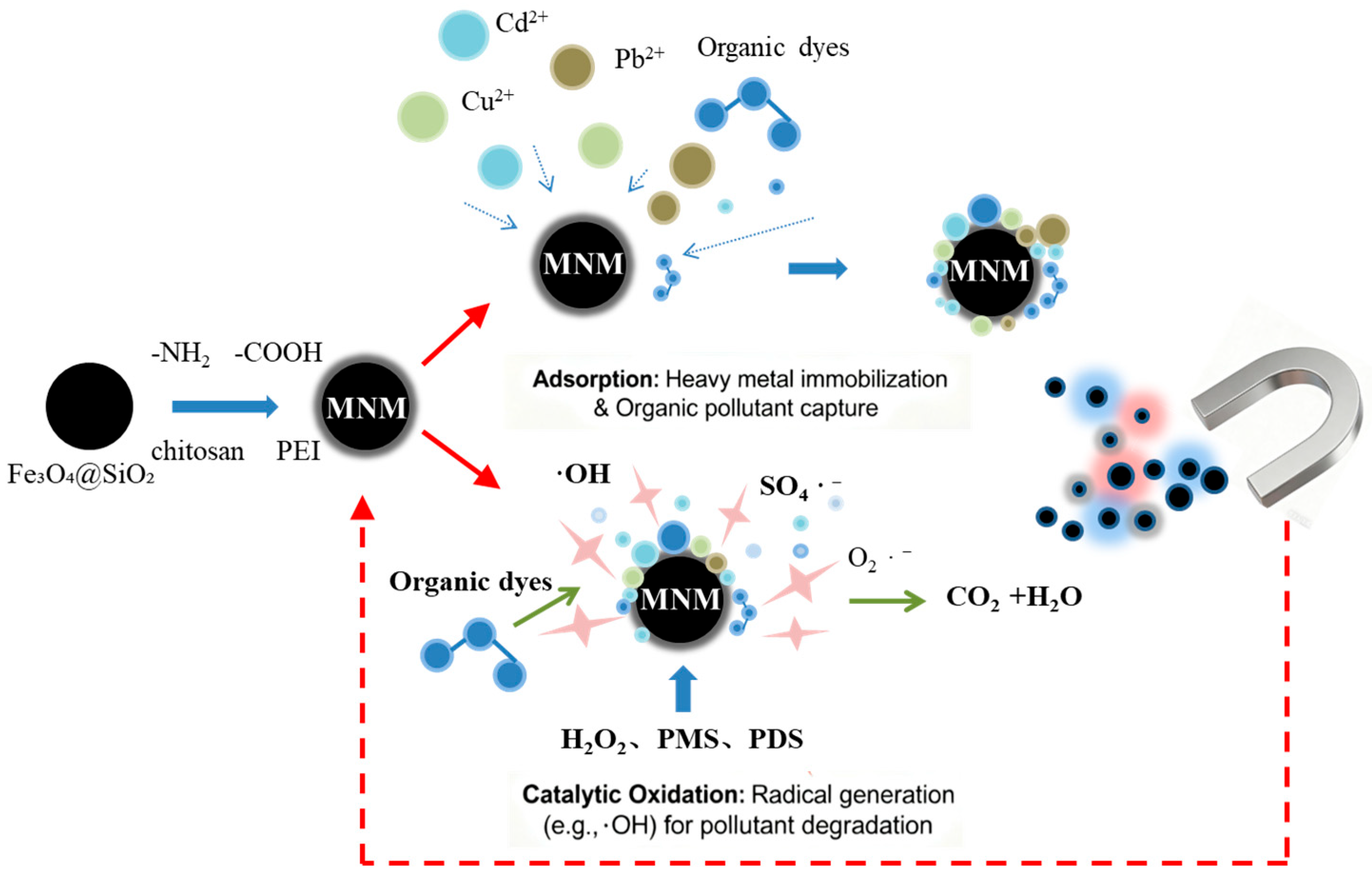 However, the widespread application of MNMs for organic pollutant degradation continues to face several technical constraints that limit their practical implementation. A primary issue lies in the instability of surface modifications, which are often applied to mitigate particle agglomeration. In complex soil or aqueous systems, these functional coatings are prone to delamination or decomposition, resulting in reduced colloidal stability and loss of reactivity.