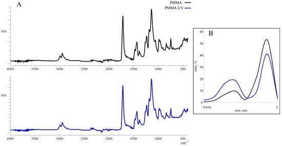 - UV aging of PMMA alters its particle size distribution, resulting in a higher proportion of small microparticles (50–125 μm)