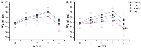 3.2.1. Effects of TSPEOs Exposure on Body Weight of Male Mice