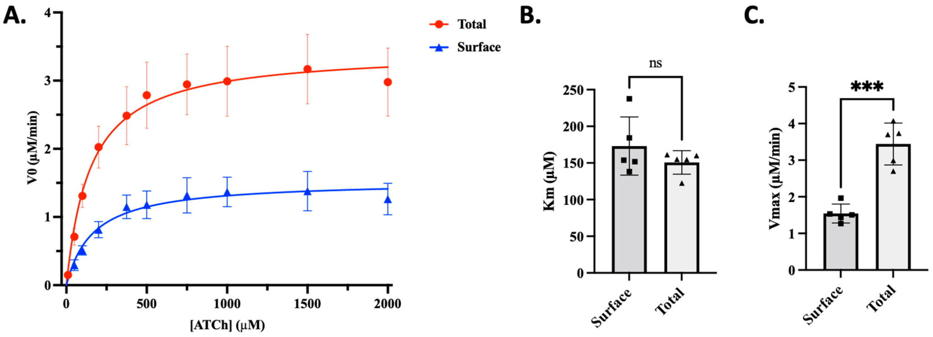 3.1. Surface AChE Contributes to Significantly Less Total AChE Activity than Intracellular Pools in C2C12 Cells
