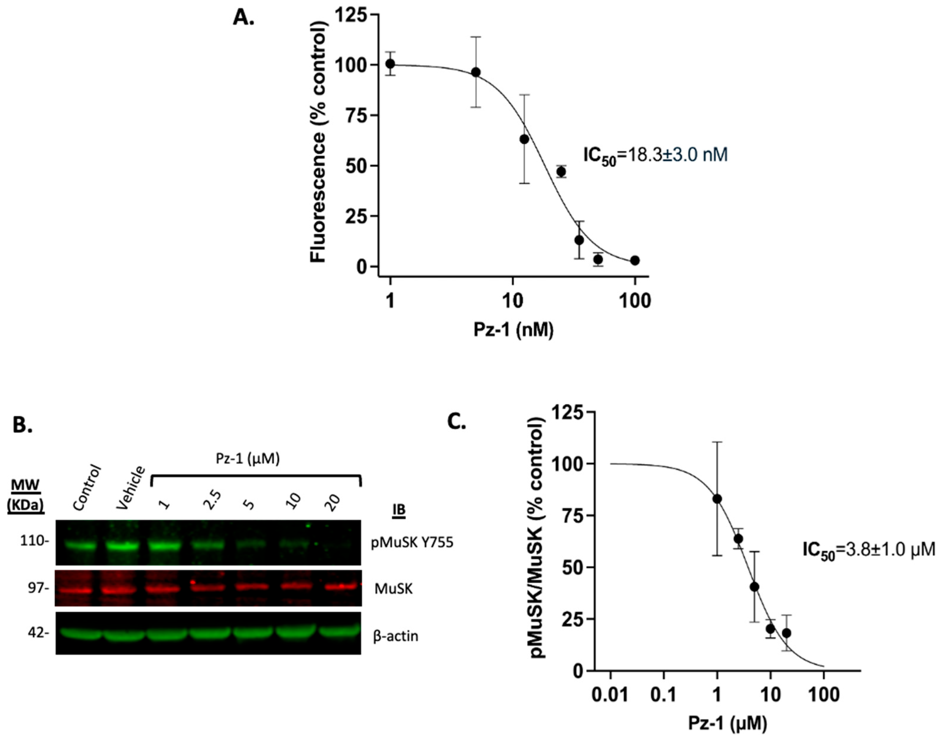 3.3. Pz-1 Decreases AChE Surface Levels in a Dose-Dependent Manner