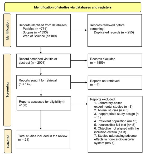 - Page, M.J.; McKenzie, J.E.; Bossuyt, P.M.; Boutron, I.; Hoffmann, T.C.; Mulrow, C.D.; Shamseer, L.; Tetzlaff, J.M.; Akl, E.A.; Brennan, S.E.; et al. The PRISMA 2020 Statement: An Updated Guideline for Reporting Systematic Reviews. BMJ 2021, 372, n71. [Google Scholar] [CrossRef]