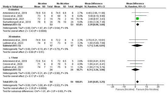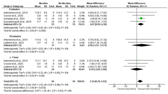 3.6.1. SBP (Nicotine vs. No Nicotine)