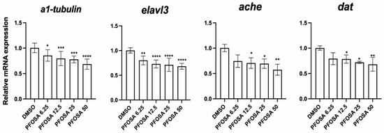 3.1. PFOSA Exposure Induces Locomotor Deficits and Behavioral Preference Alterations and in Zebrafish Larvae