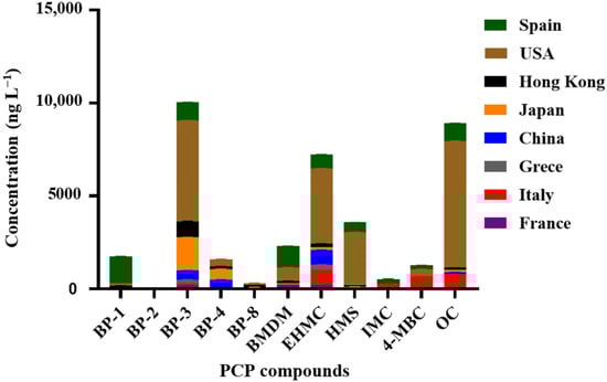 - Picot-Groz, M.; Fenet, H.; Martinez Bueno, M.J.; Rosain, D.; Gomez, E. Diurnal Variations in Personal Care Products in Seawater and Mussels at Three Mediterranean Coastal Sites. Environ. Sci. Pollut. Res. 2018, 25, 9051–9059. [Google Scholar] [CrossRef]