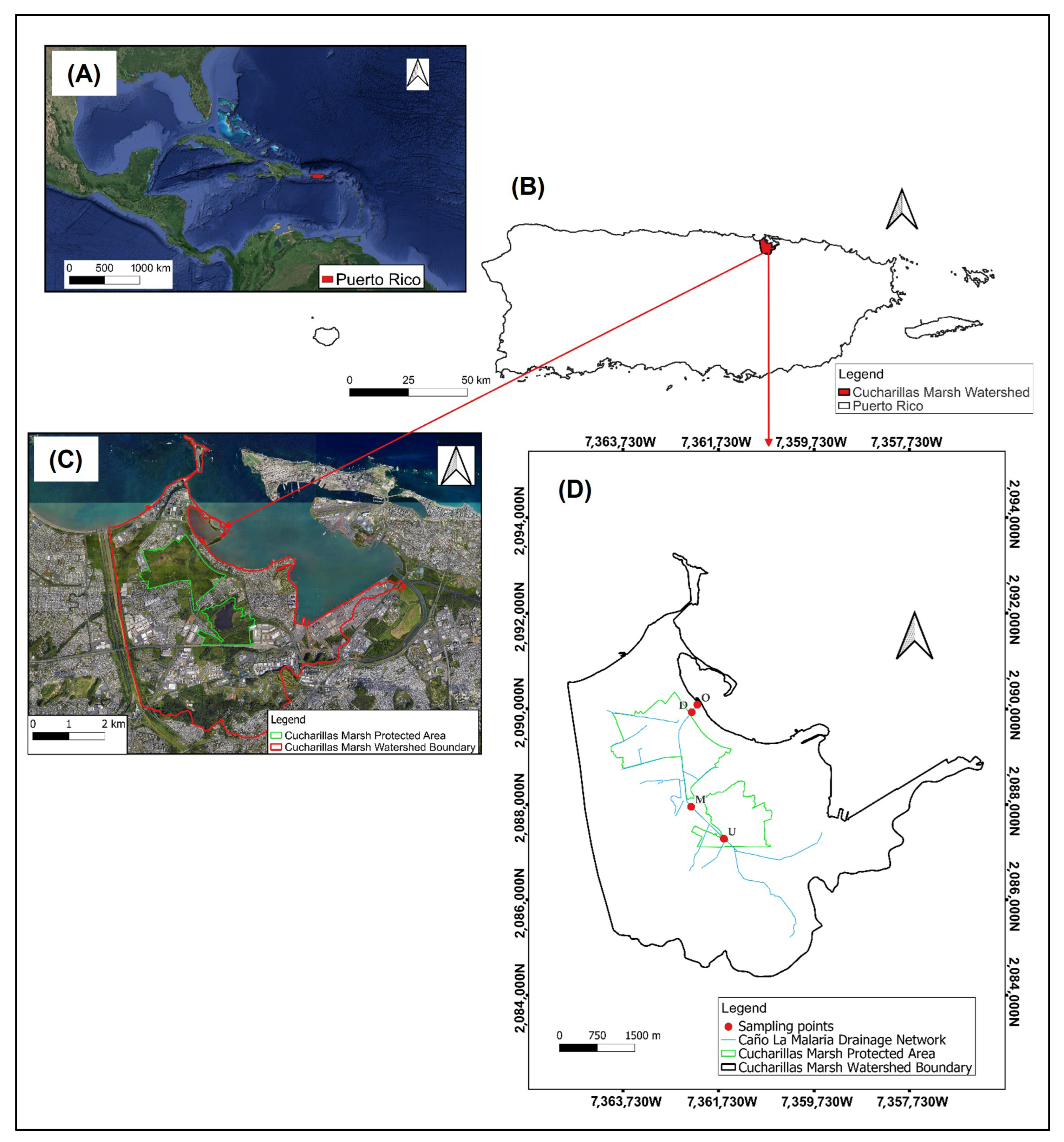 Berríos-Rolón, P.J.; Márquez, F.; Cotto, M.C. Occurrence and Distribution of Three Low Molecular Weight PAHs in Caño La Malaria, Cucharillas Marsh (Cataño, Puerto Rico): Spatial and Seasonal Variability, Sources, and Ecological Risk. Toxics 2025, 13, 860. https://doi.org/10.3390/toxics13100860