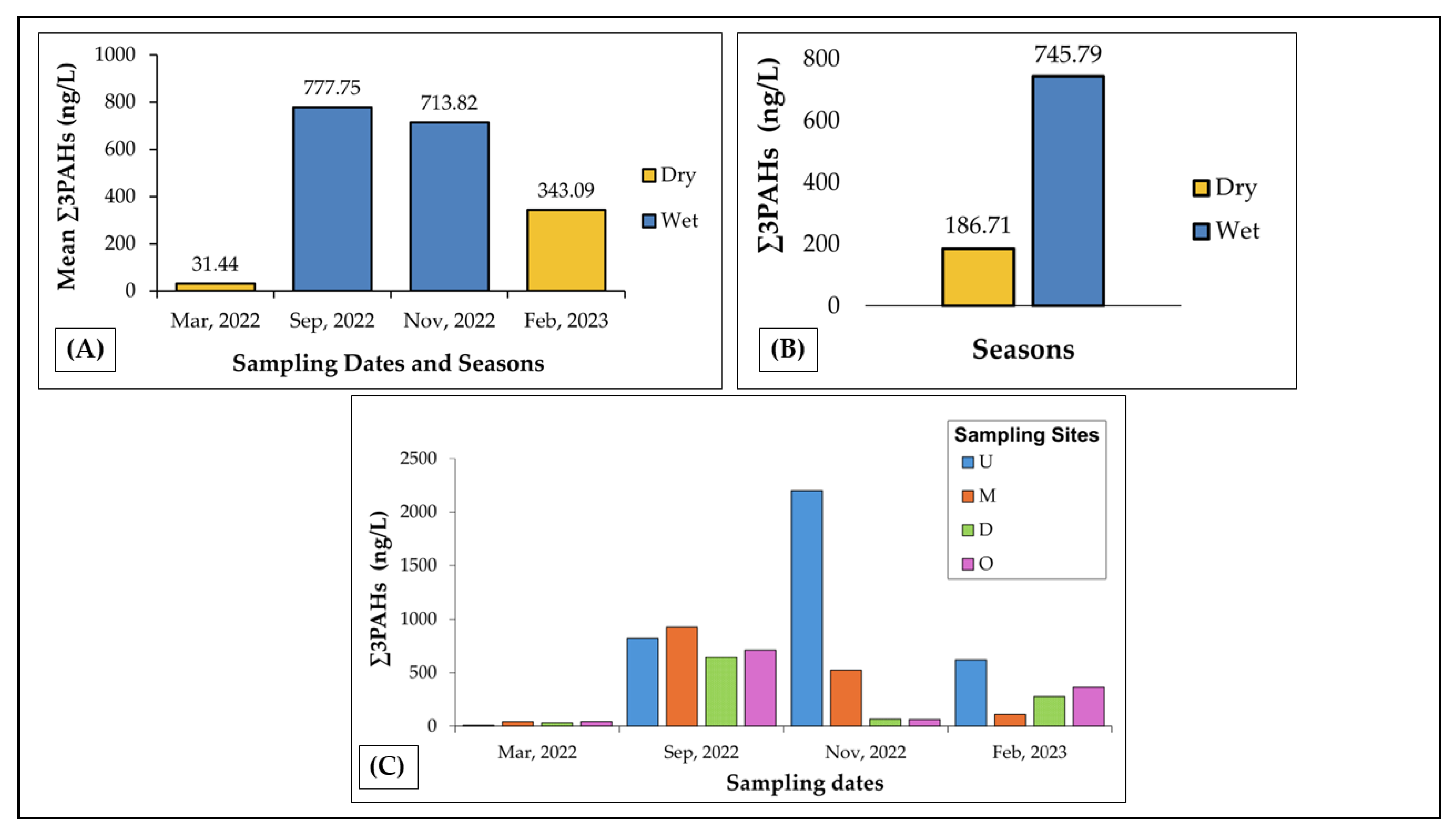 - This first spatial–seasonal assessment of three low-molecular-weight PAHs in Caño La Malaria reveals rainfall-driven variability, with concentrations peaking during the wet season.