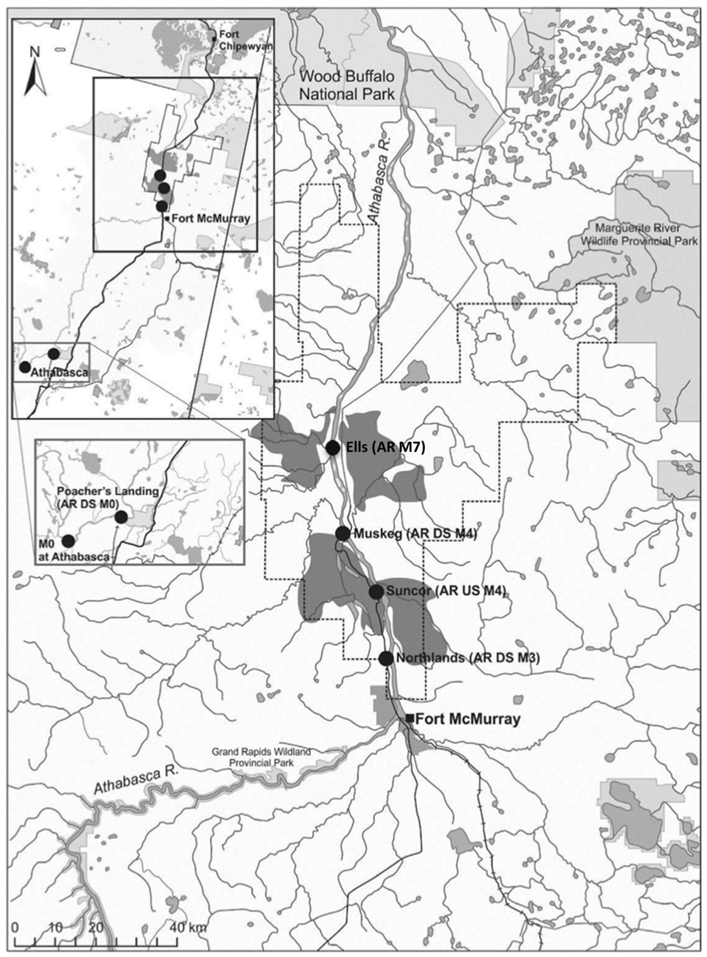 - Arciszewski, T.J.; Munkittrick, K.R.; Kilgour, B.W.; Keith, H.M.; Linehan, J.E.; McMaster, M.E. Increased Size and Relative Abundance of Migratory Fishes Observed near the Athabasca Oil Sands. FACETS 2017, 2, 833–858. [Google Scholar] [CrossRef]