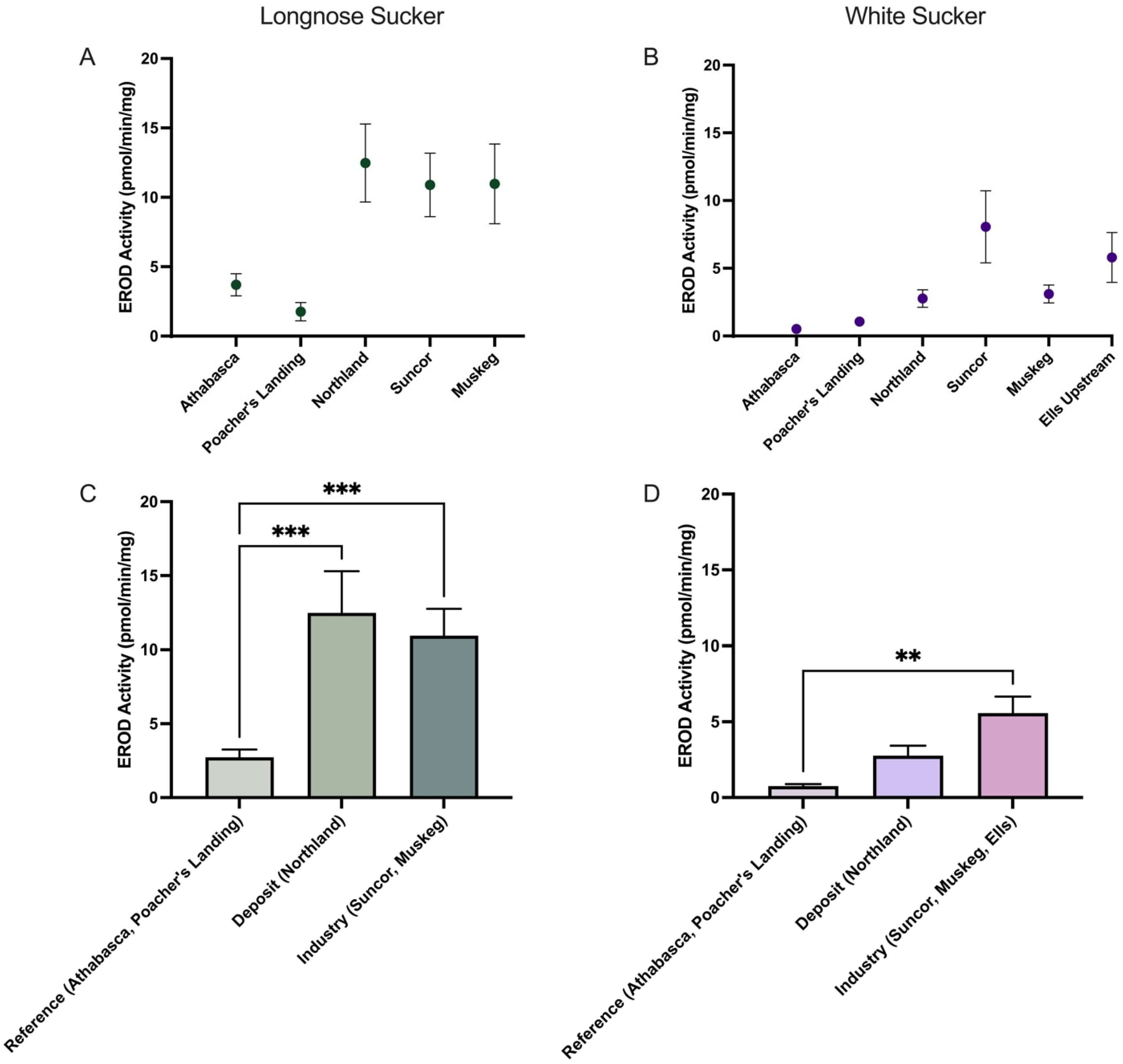 - Arens, C.J.; Arens, J.C.; Hogan, N.S.; Kavanagh, R.J.; Berrue, F.; Van Der Kraak, G.J.; Van Den Heuvel, M.R. Population Impacts in White Sucker (Catostomus commersonii) Exposed to Oil Sands–Derived Contaminants in the Athabasca River. Environ. Toxicol. Chem. 2017, 36, 2058–2067. [Google Scholar] [CrossRef]