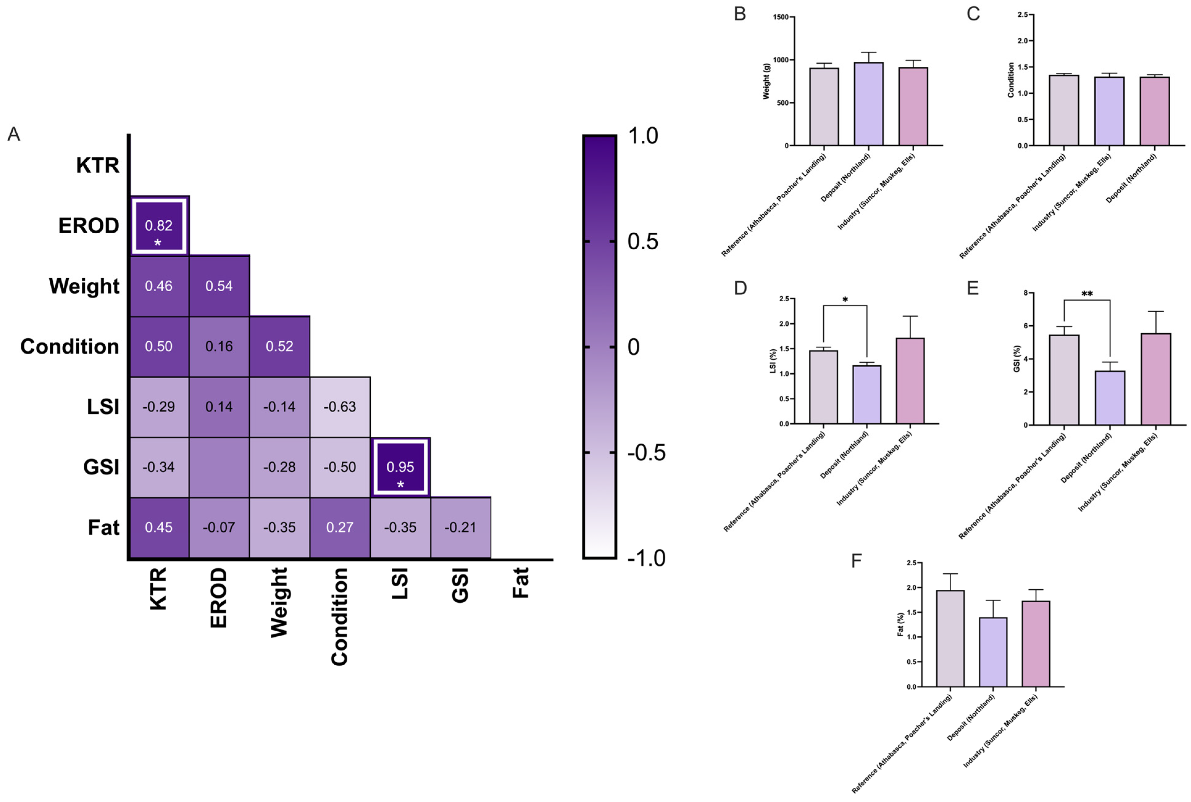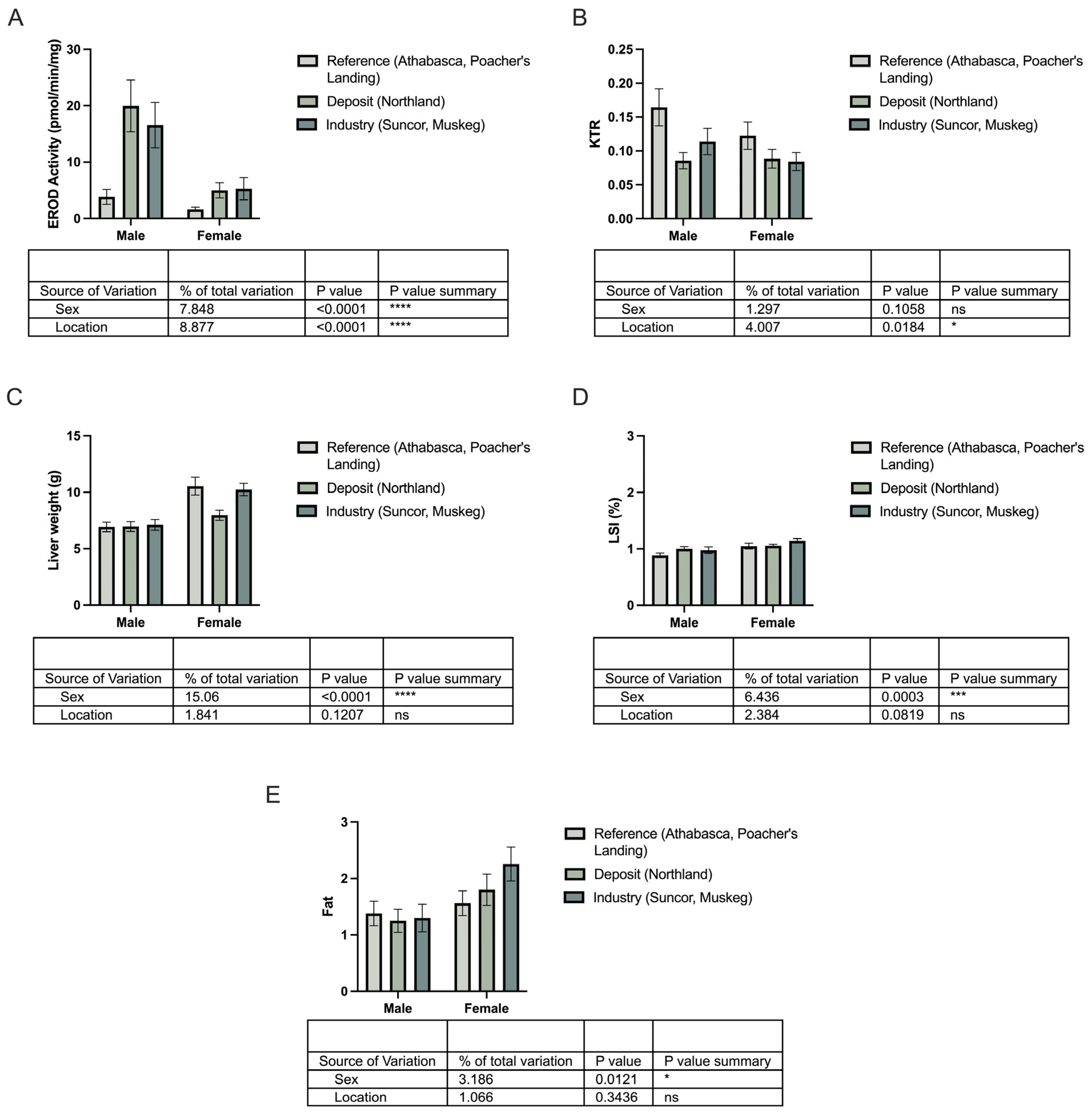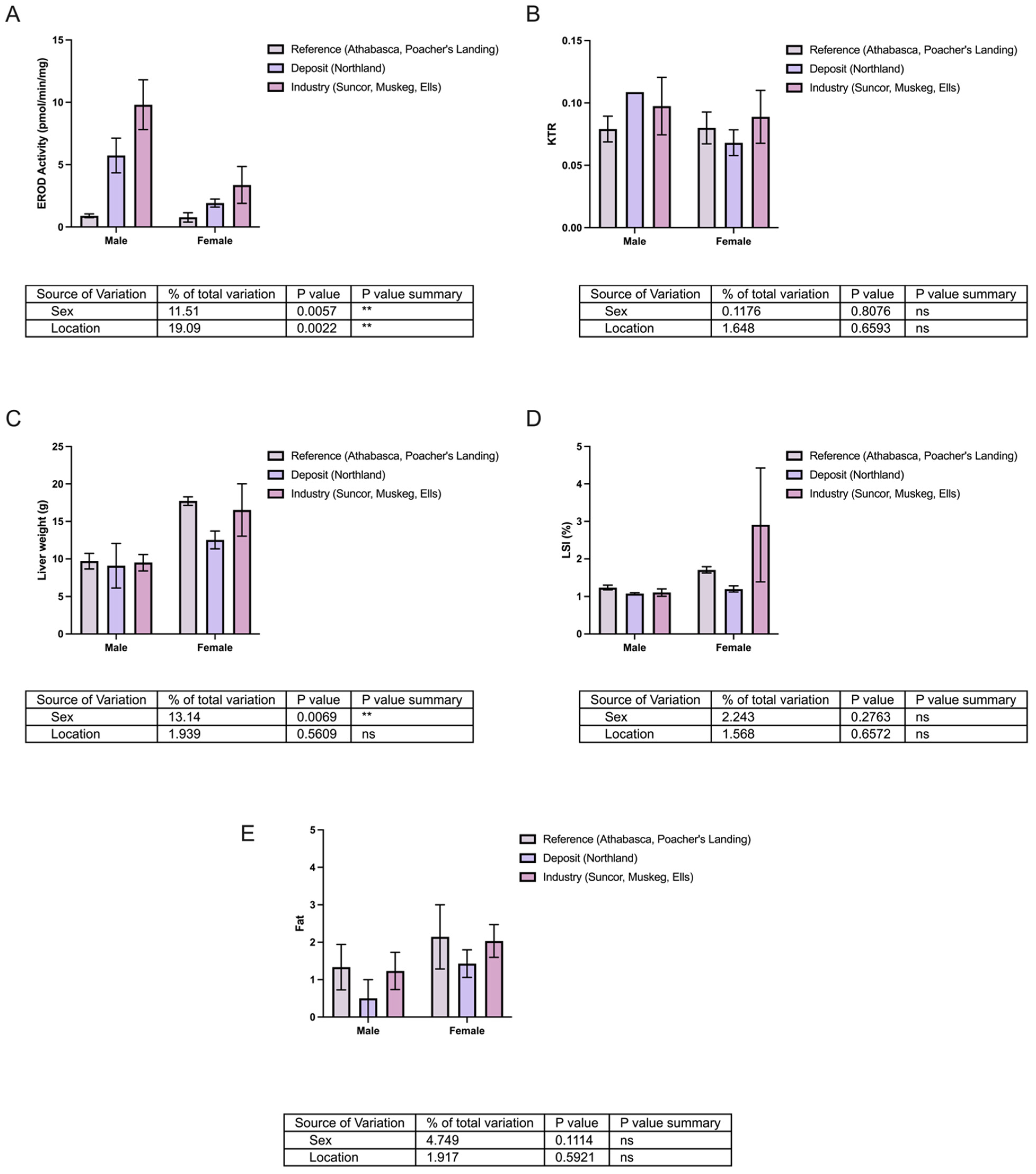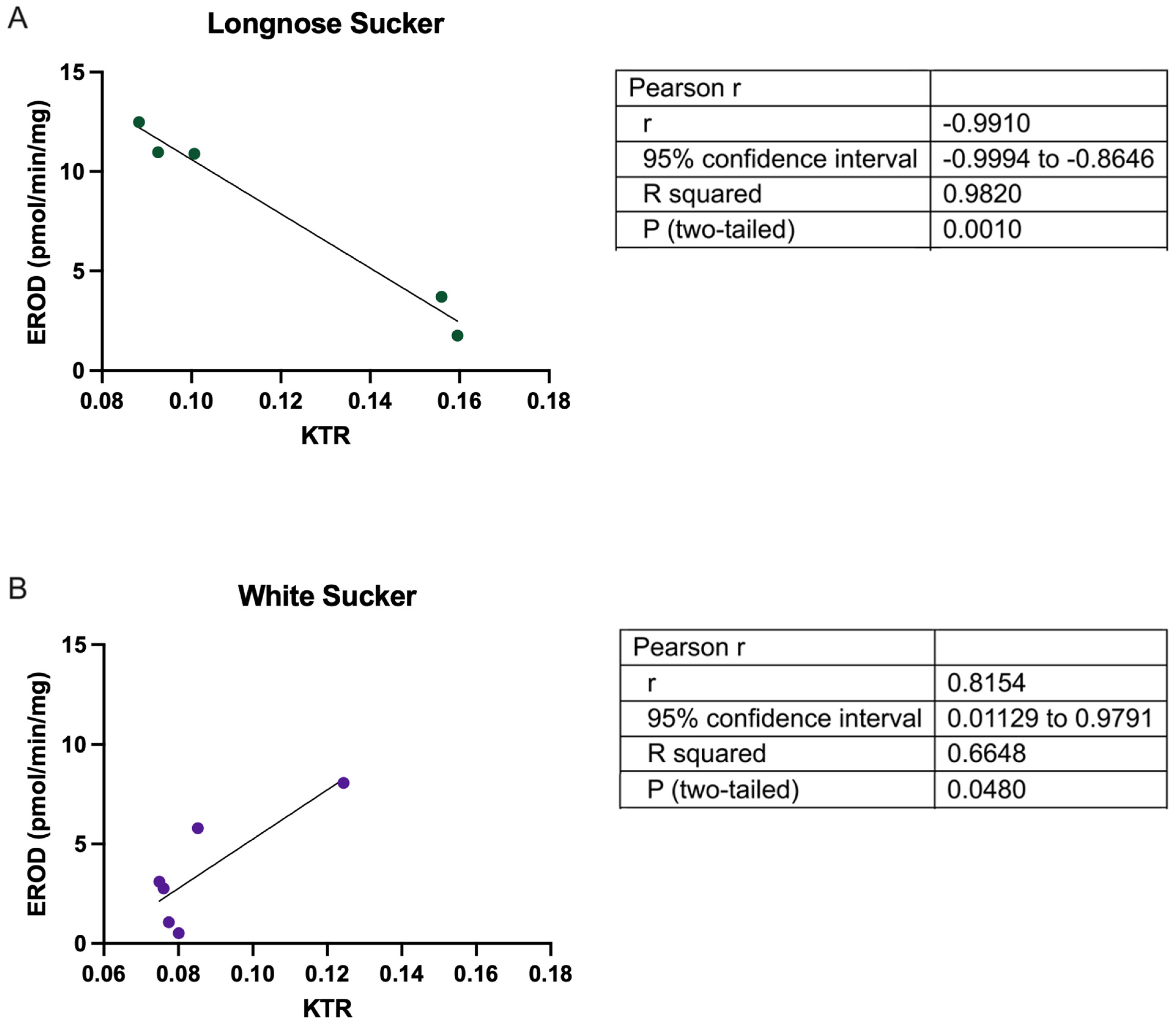 3.1. Comparative Analysis of Kynurenine–Tryptophan Ratio and EROD Activity in Longnose and White Sucker