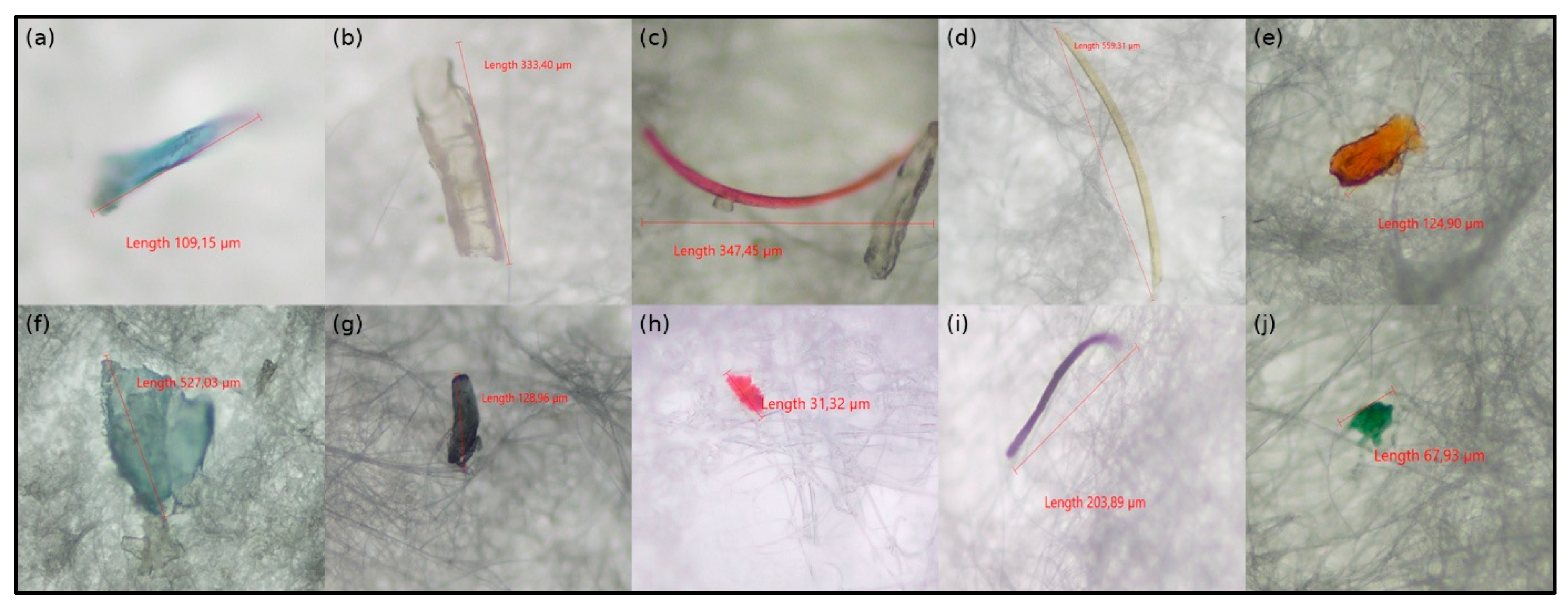 - Jabeen, K.; Su, L.; Li, J.; Yang, D.; Tong, C.; Mu, J.; Shi, H. Microplastics and Mesoplastics in Fish from Coastal and Fresh Waters of China. Environ. Pollut. 2017, 221, 141–149. [Google Scholar] [CrossRef]