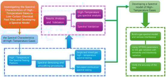 In summary, to address this, our study employed a custom-built high-temperature gas spectral testing platform to extract spectral signatures of gas-phase products from low-carbon chemical pool fires. We established a stable high-temperature combustion environment, investigated spectral interference mechanisms among combustion products, and developed a high-precision spectral radiation model. These advancements provide a foundational framework for remote sensing technologies to identify and monitor low-carbon chemical fire pollutants.