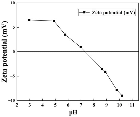 As illustrated shown in Figure 5, the zeta potential variation trend of Z-LDH exhibits a pattern similar to that of pristine LDH [21], with the surface becoming progressively more negatively charged as increase pH values. The pH pHpzc of Z-LDH was measured as 7.35. Notably, a comparative analysis revealed that the zeta potential values of Z-LDH are substantially lower than those of Cu3Mn-LDH. This significant reduction originated primarily from the intrinsic negative surface charge of the incorporated zeolite component, thereby effectively modulating the overall surface charge characteristics of the composite material. Importantly, Z-LDH maintained a broad pH applicability range comparable to that of Cu3Mn-LDH, while demonstrating superior degradation performance. This enhanced catalytic activity suggested that the modified zeta potential profile of Z-LDH had a beneficial effect on its functional properties.