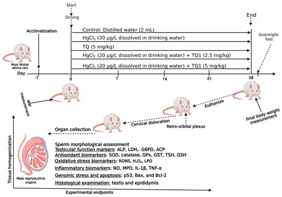 Owumi S, Otunla M, Akindipe P, Arunsi U, Babalola JO, Irozuru CE, Altayyar A, Oluwawibe B, Owoeye O, Oyelere AK. Thymoquinone Protective Effect Against Mercury-Induced Reproductive Derangement in Rats: In Vivo and In Silico Investigation. Toxics. 2025; 13(10):896. https://doi.org/10.3390/toxics13100896