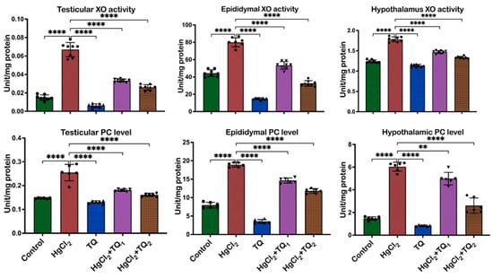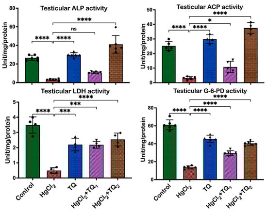 3.4. TQ Co-Administration Increased the Activities of Testicular Enzymes in Experimental Animals