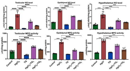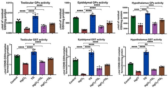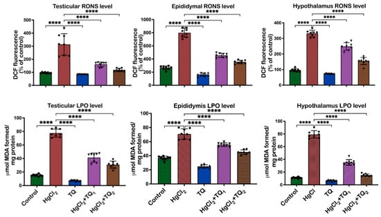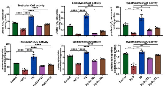 3.6. TQ Co-Treatment Attenuated HgCl2-Induced Oxidative Stress in the Reproductive Tissues of Rats